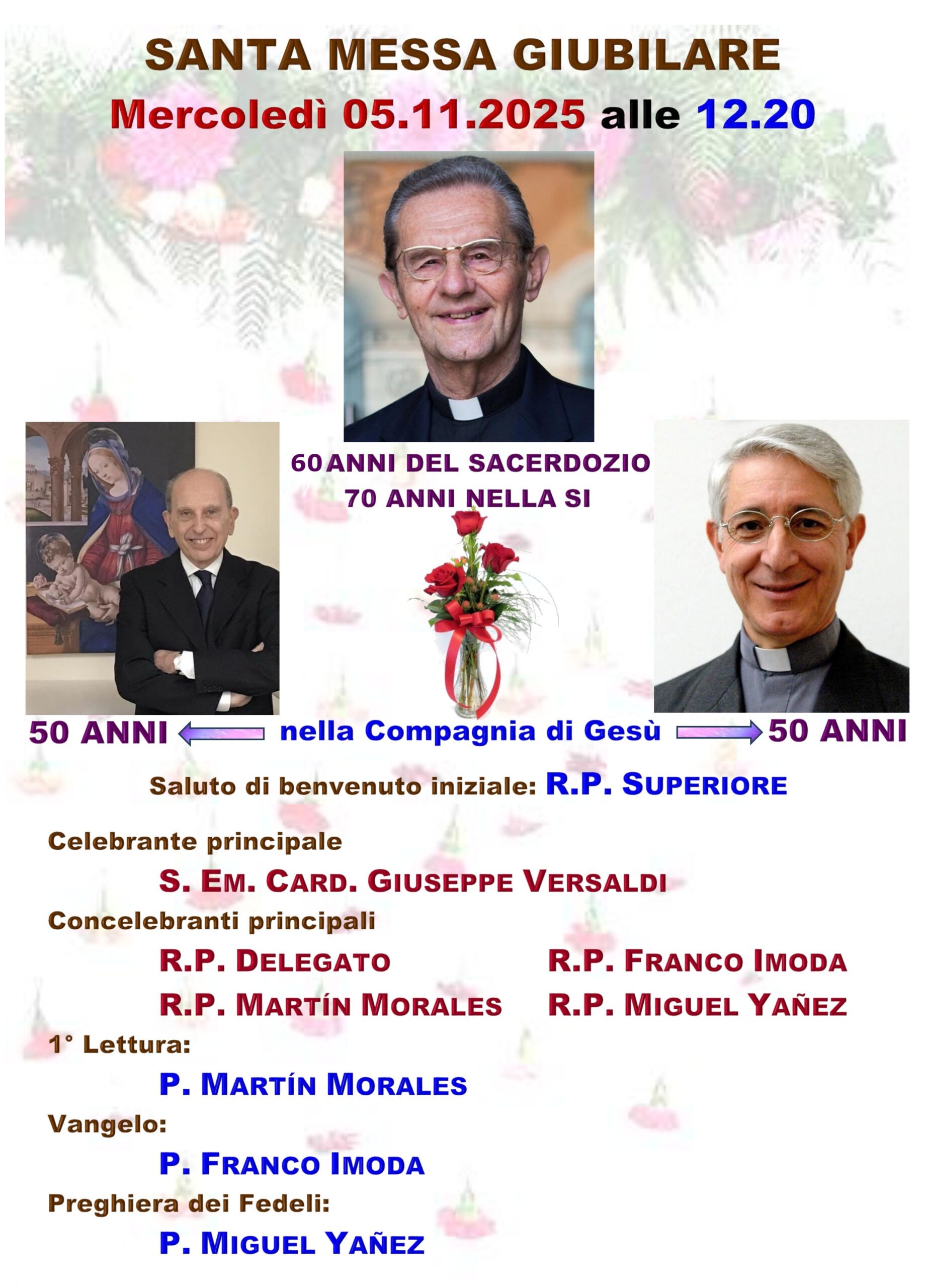 La messa, celebrata alle ore 12:20 nella cappella domestica della comunità Gregoriana, ha rappresentato non solo un’occasione di festa ma anche un momento di riflessione e preghiera per i padri giubilati e per la missione della Compagnia di Gesù. È stato un tributo alla fedeltà, al servizio e al carisma che ciascuno di loro ha saputo incarnare nel corso degli anni.