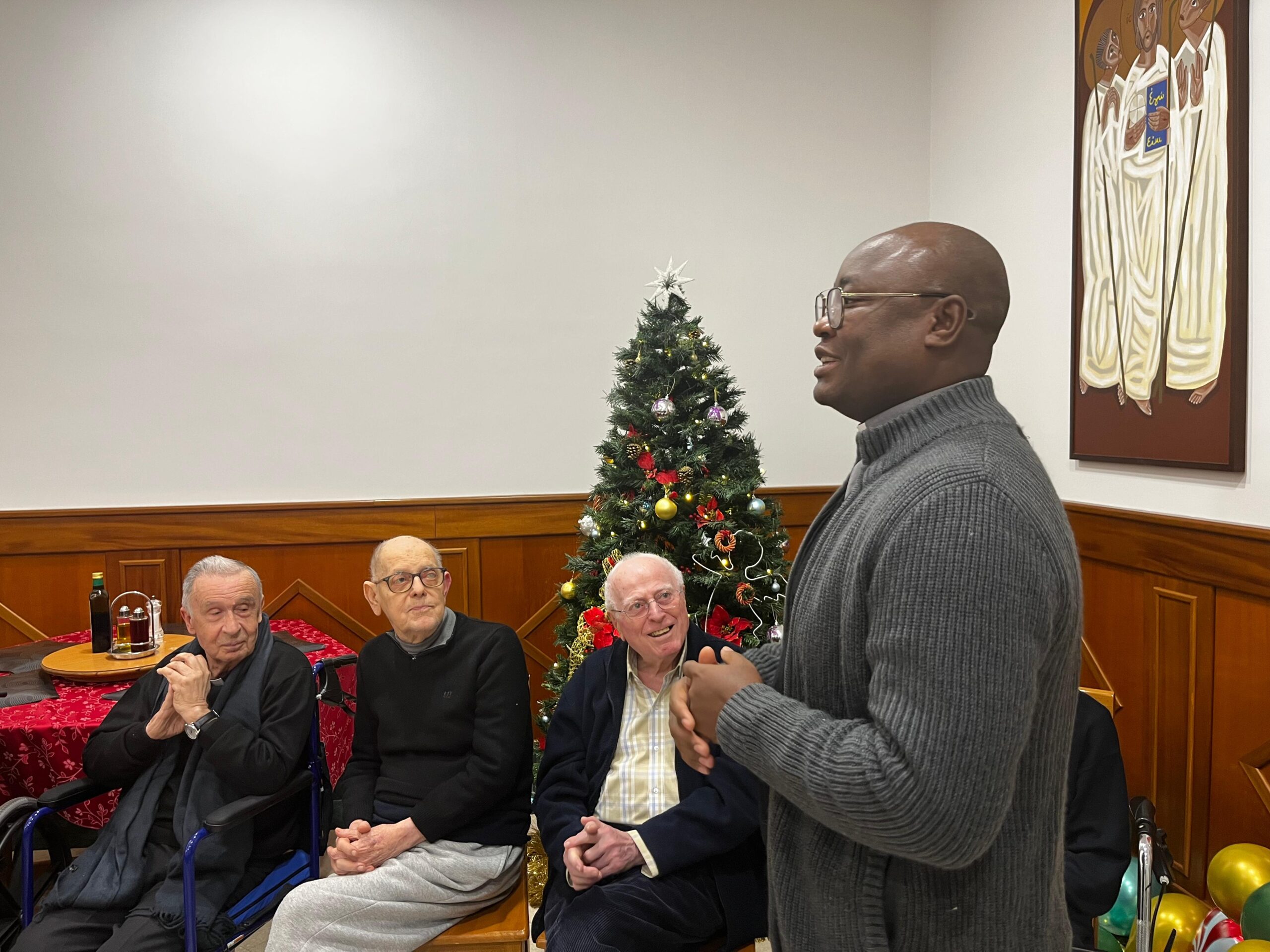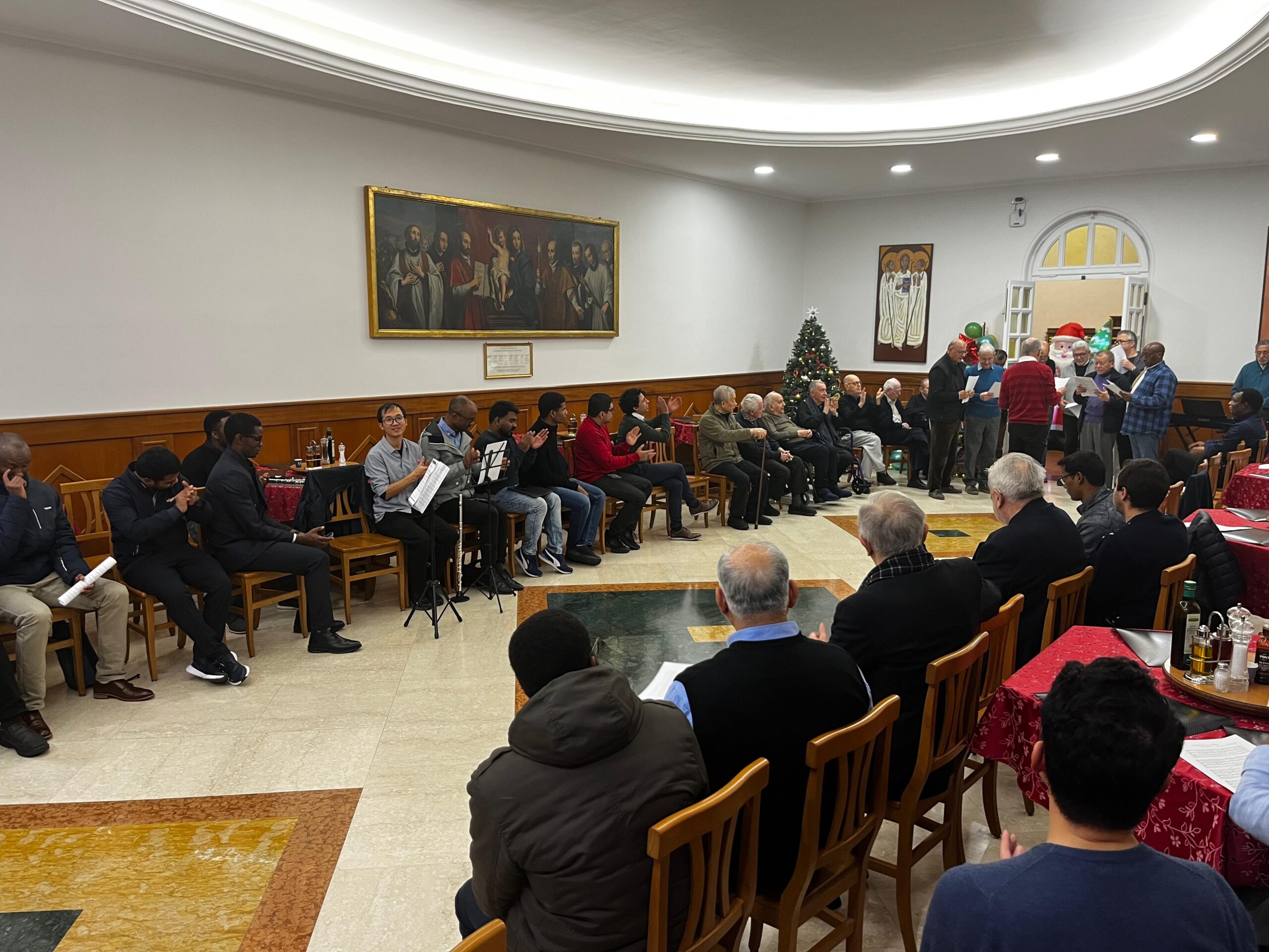 Il 24 dicembre è stato un altro giorno memorabile per la comunità: prima di iniziare il pranzo che precedeva la celebrazione eucaristica della Natività di Nostro Signore con i membri della Curia Generalizia, abbiamo ascoltato l’annuncio del Natale tratto dal Martirologio Romano, eseguito da p. Fabrice Bagendekere, S.J. Dopo il pranzo, alcuni membri della comunità si sono uniti a quelli della Curia Generalizia per la Santa Messa e per la condivisione dei doni preparati dalla comunità che ci ha ospitato.