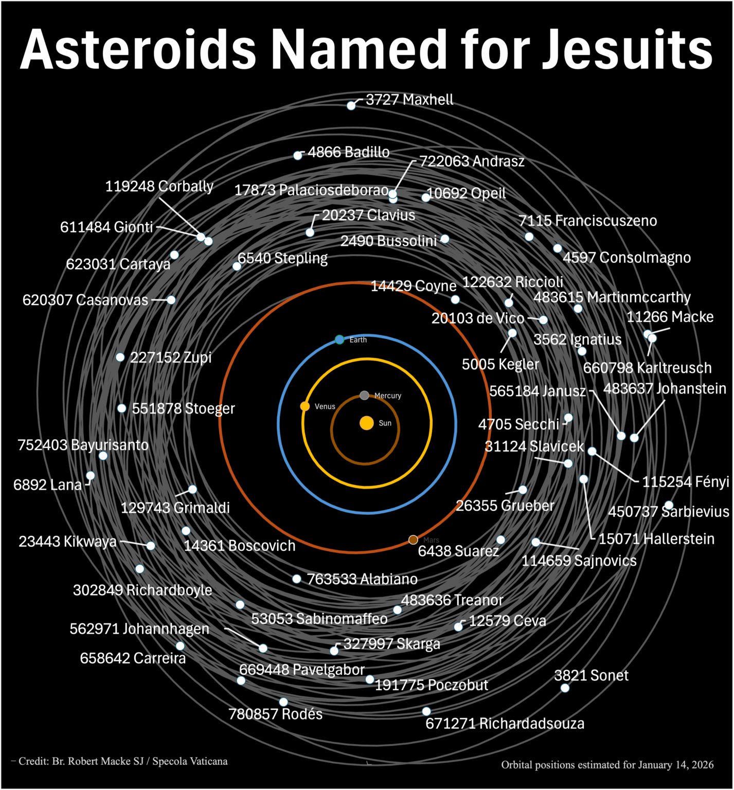 La comunità astronomica internazionale ha approvato la richiesta di attribuire il nome (752403) Bayurisanto a un asteroide, in riconoscimento dei contributi offerti da p. Christoforus Bayu Risanto, S.J., nel campo della scienza atmosferica e della meteorologia.