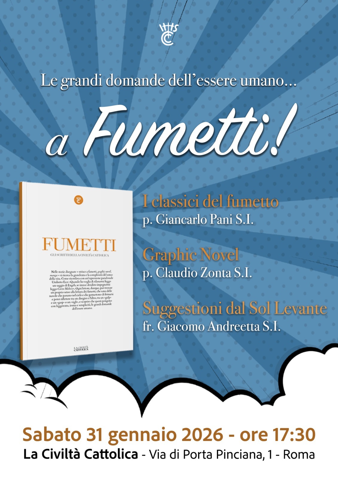 Sabato 31 gennaio 2026, alle ore 17:30, nella sede de La Civiltà Cattolica (in via di Porta Pinciana, 1 – Roma), si terrà un incontro con gli autori di Fumetti, il 31° volume della collana Accènti.